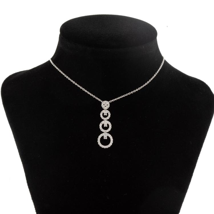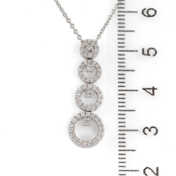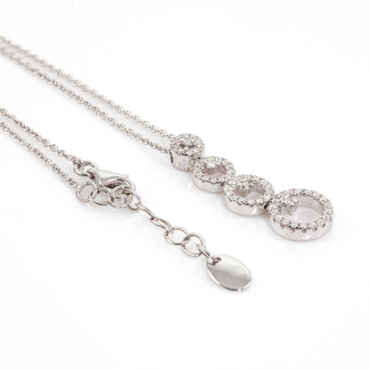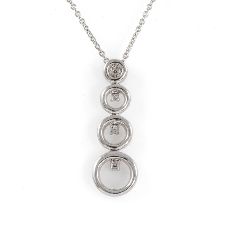 Diamond dress pendant with round Natural Diamonds totalling 0.32cts (Estimated grading: H SI). 18ct white gold with 18ct white gold adjustable 37cm chain. Pendant length: 2.7cm. Weight: 4.9g. (Pre-owned)