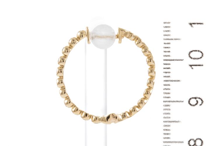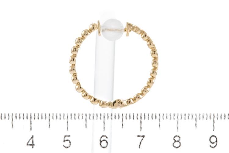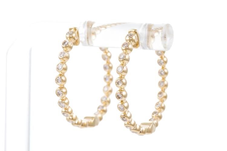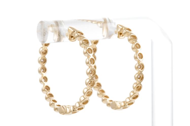Diamond hoop earrings with 42 round Diamonds totalling 0.49cts (Estimated grading: H-I SI). Back of the hoop has the Diamonds set inside the hoop. 14ct yellow gold. Width: 24.0mm. Length: 24.0mm. Weight: 4.1g. (New)