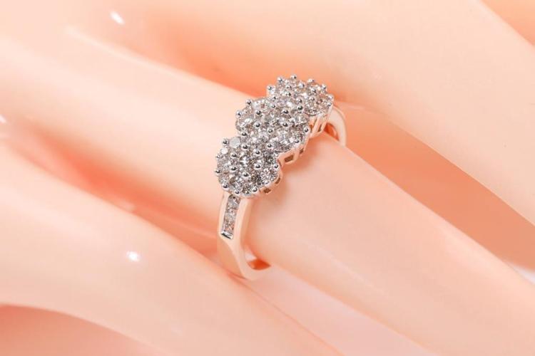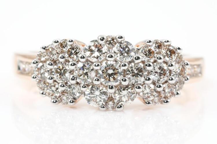 Diamond dress ring with 35 round Natural Diamonds totalling 0.90ct (Estimated grading: H SI). 14ct rose and white gold. Size: M1/2. Weight: 4.0g. (New)