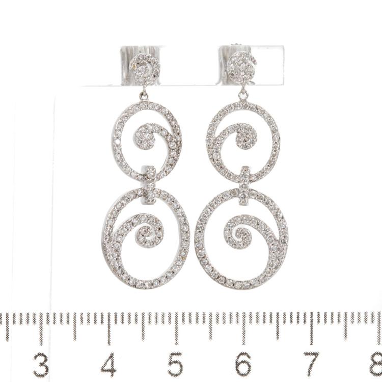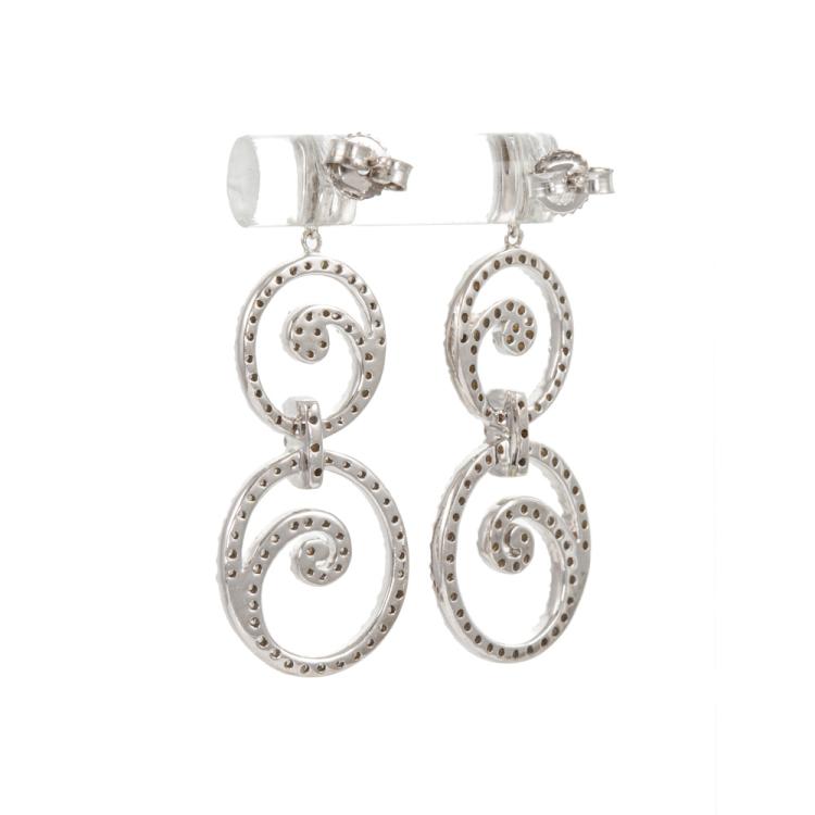 Diamond dress earrings with round Natural Diamonds totalling 1.09cts (Estimated grading: H-I SI). 14ct white gold. Weight: 4.9g. (Pre-owned)