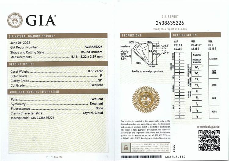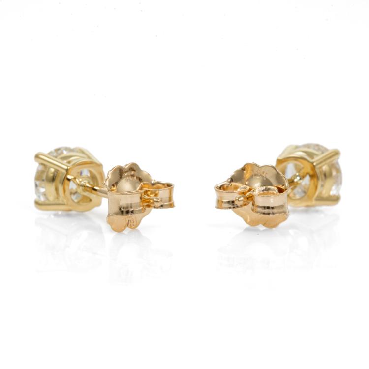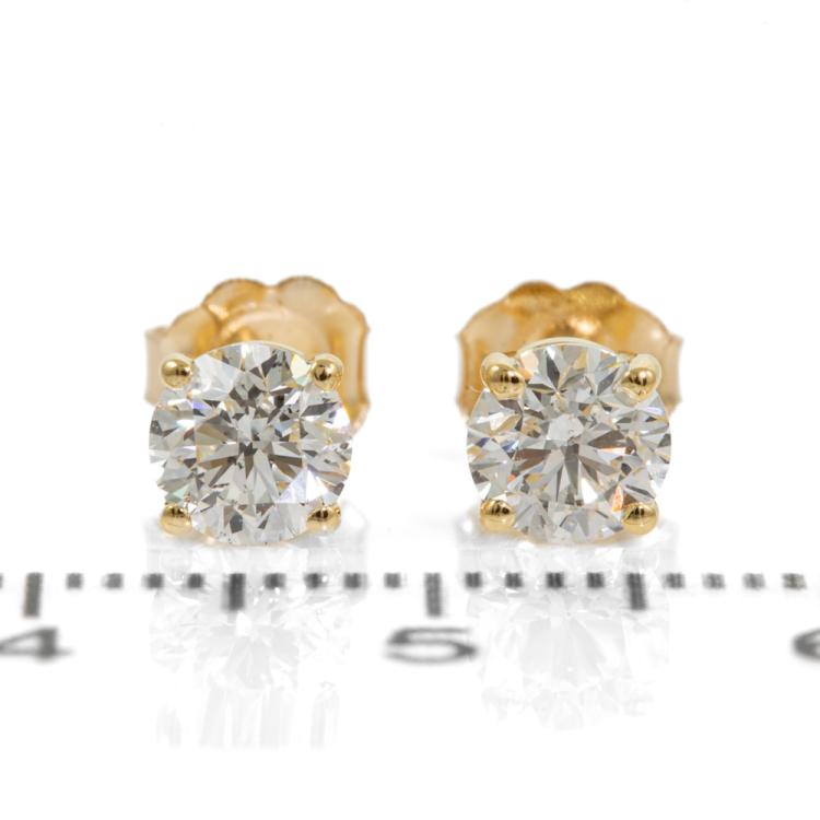 Diamond stud earrings with 2 round brilliant cut Natural Diamonds totalling 1.11cts (both with GIA Summary Reports graded as F SI1 #2436532020, 2438635226