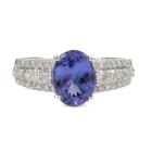 Tanzanite and Diamond ring with an oval shape Natural Tanzanite of 1.74ct and round Natural Diamonds totalling 0.53ct (Estimated grading: G-H SI1). 18ct white gold. Ring size L1/2. Band width: 2.4-4.1mm. Weight: 4.0g. With Valuation Certificate dated 16/02/11. (Pre-owned)