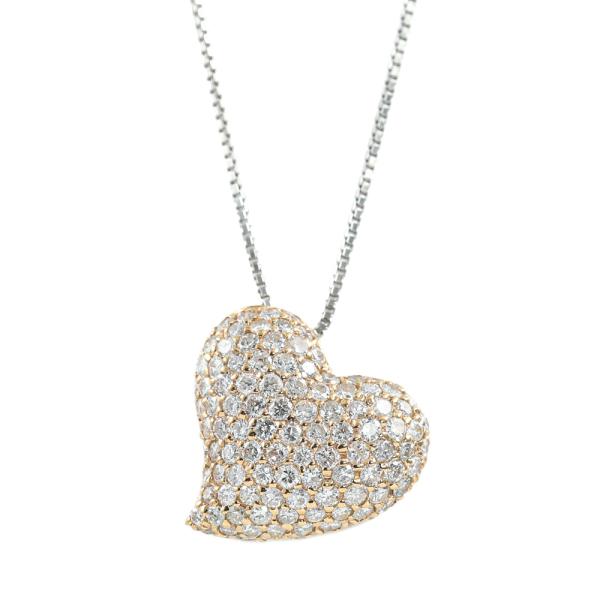 Heart design pendant with round Natural Diamonds totalling 2.00ct (Estimated grading: H-I SI-P1). 18ct rose gold with 45cm 16ct white gold (XRF tested, stamped K18) chain. Weight: 4.8g. (Pre-owned)