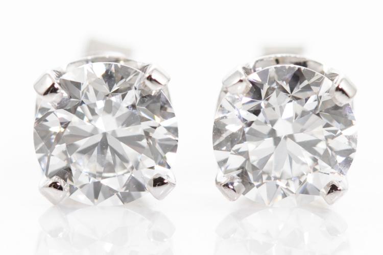 Diamond stud earrings with 2 round brilliant cut Natural Diamonds totalling 2.00cts (with GIA reports graded as D VVS2 #2477050912, 5473004961). 18ct white gold. Weight: 2.3g. (New)