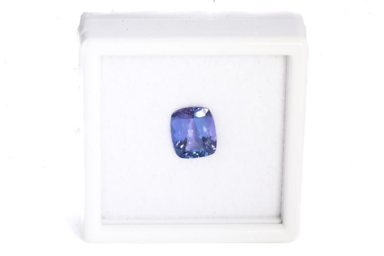 A loose cushion cut Tanzanite of 3.47ct. Dimensions: 10.07mm x 8.16mm x 4.96mm. (As New)