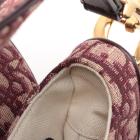 Christian Dior Oblique Saddle bag in burgundy Dior Monogram canvas. Featuring leather trims and single handle, an exterior pocket at back, gold-toned hardware, CD signature on the strap, flap with magnetic closure on front. This opens to beige fabric lining interior with a zipped pocket. Approximate dimensions: 26cm(L) x 20cm(H) x 6.5cm(D), 16.5cm handle drop. Accompanied by a Dior certificate card dated14/03/19. With Entrupy Certificate of Authenticity. (Pre-owned)
