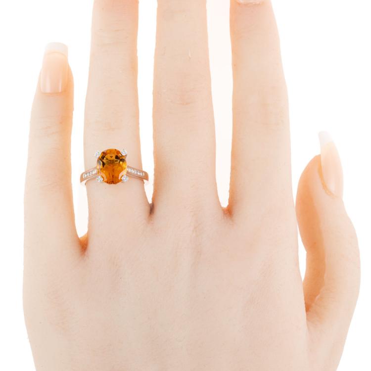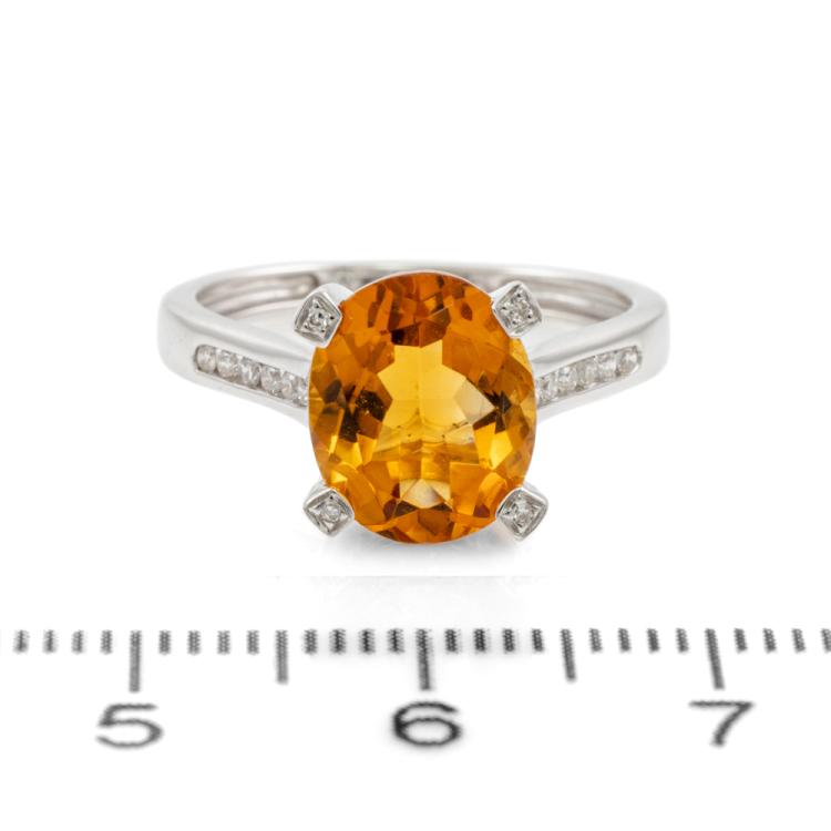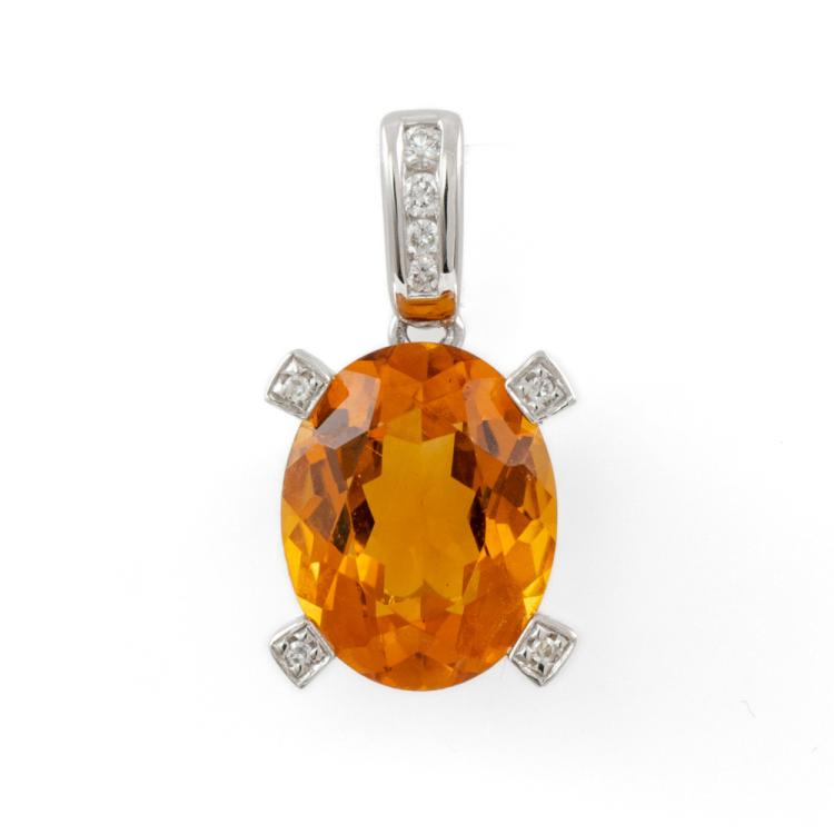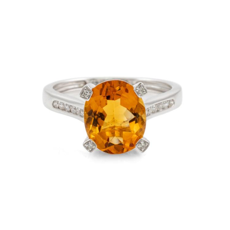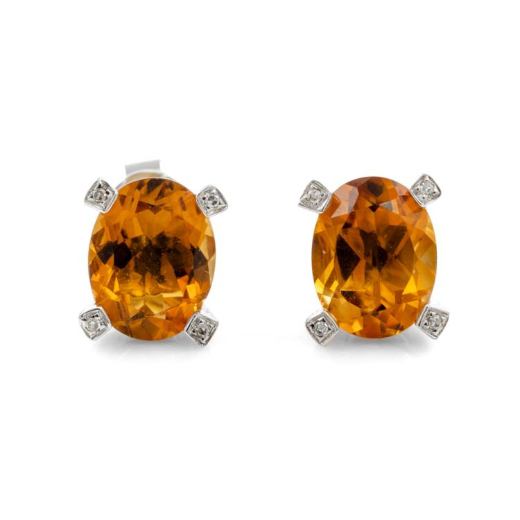 Matching ring, pendant & earring set. 1) Citrine ring with centre oval Natural Citrine of approx. 2.2cts (10.0 x 8.0mm) & Natural Diamonds totalling 0.10cts. Ring size L. 2). Citrine & Diamond Earrings with oval Natural Citrine (8.95mm x 6.95mm) totalling approx. 2.80cts & Natural diamonds totalling approx. 0.04cts. 3). Citrine & Diamond pendant with oval Natural Citrine of approx. 2.20cts (10.0mm x 7.9mm) & diamonds totalling 0.02cts. Total weight: 7g. (As New)