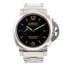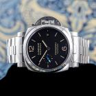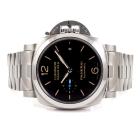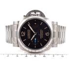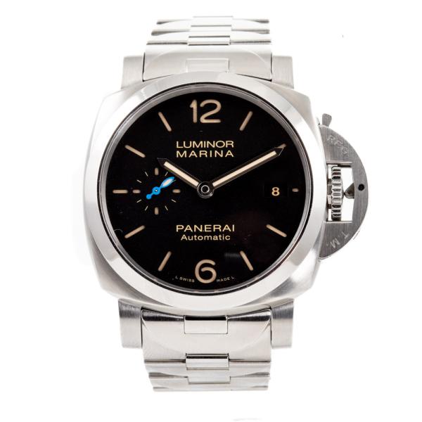 Panerai Luminor Marina stainless steel automatic mens watch. Black dial, date, case diameter: 42mm, wrist size: 19cm, Swiss made. Ref# PAM00722/OP7055. With Panerai stainless steel bracelet and clasp. With Certificate of Authenticity, Panerai International Guarantee Certificate card dated 04/2018, Complete Service Invoice dated 02/11/2023 and Panerai box. Balance of 24 month Panerai Service Warranty. (Pre-owned)
