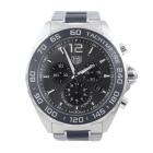 TAG Heuer Formula 1 stainless steel and ceramic quartz mens watch. Silver grey chronograph dial, date, case diameter: 43mm, wrist size: 16.5cm, Swiss made. Ref# CAZ1011. With TAG Heuer two-tone bracelet and clasp. With Certificate of Authenticity. No warranty provided. (Pre-owned)