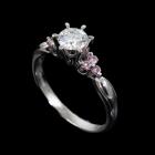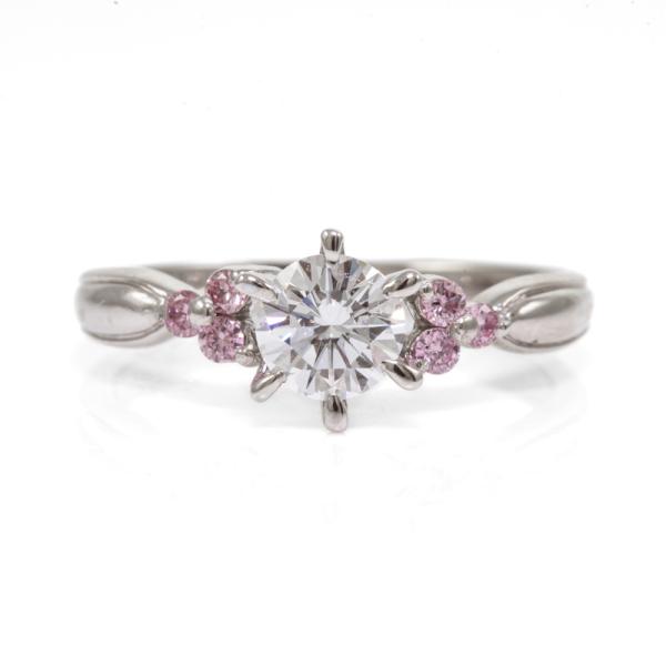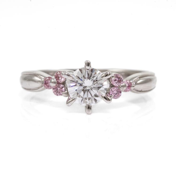 Diamond ring with centre round Natural Diamond of 0.52cts (Estimated grading: D VVS2) and 6 round pink Natural Diamonds totalling 0.11cts (One pink Diamond of 0.02ct certified with GSL Coloured Diamond Report graded as Natural Fancy Pink P2 #AA68664/2, Origin: Argyle Deposit, Western Australia). Platinum 900. Ring size K. Band width: 2.8mm - 2.0mm. Weight: 3.9g. (Pre-owned)