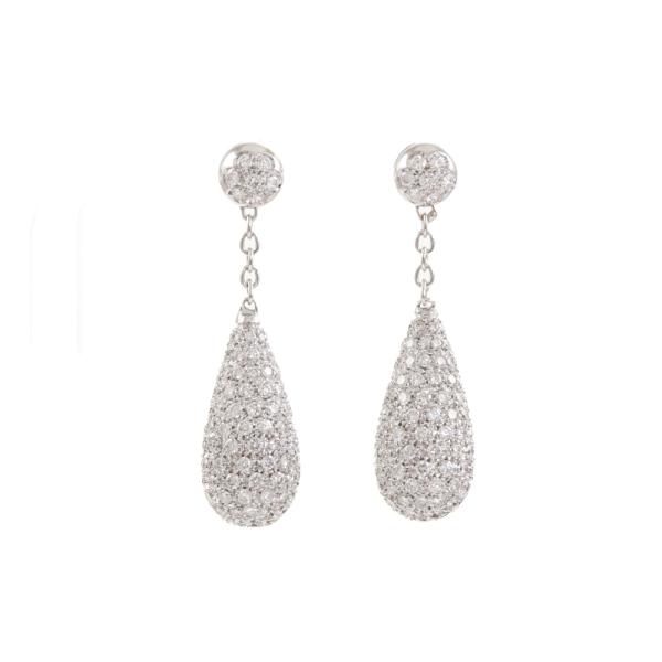 Diamond drop earrings with round Natural Diamonds totalling 2.61ct (Estimated grading: G SI). 18ct white gold with 18ct white gold safety lock backs. Length: 3.2cm. Weight: 7.9g. With Certificate #417022. (Pre-owned)