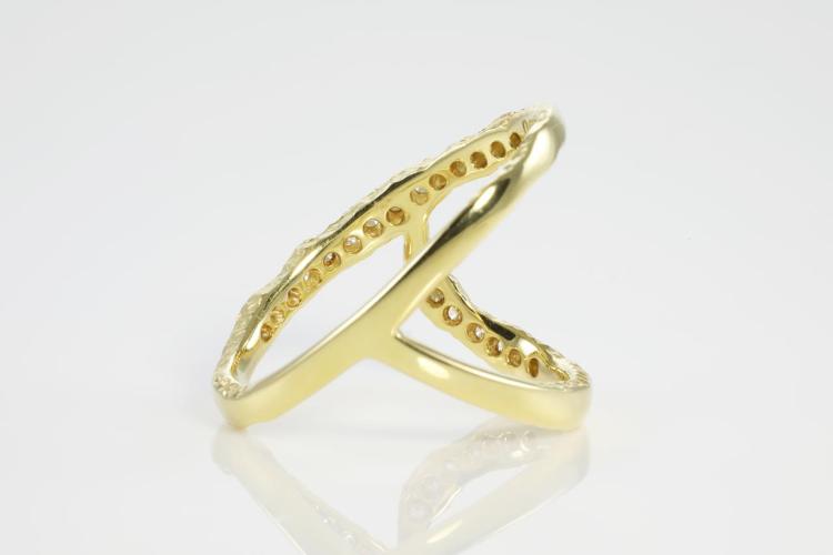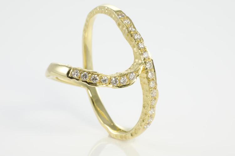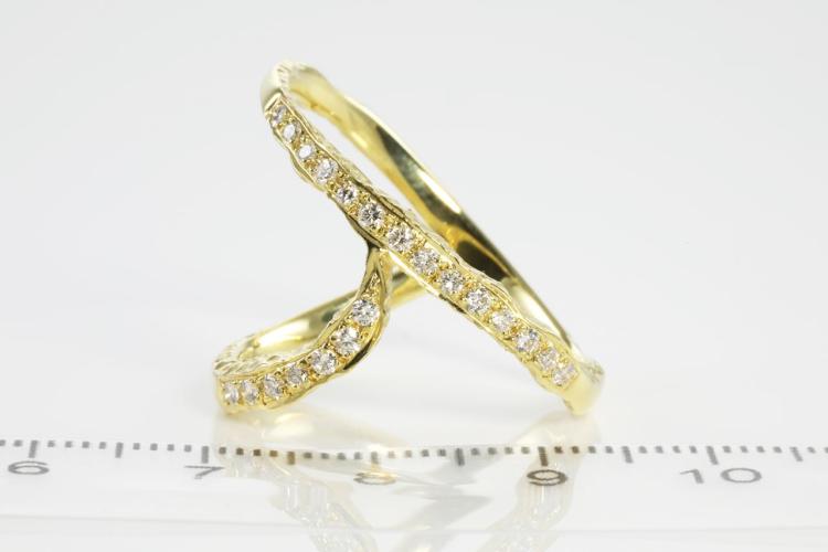Diamond ring with round Natural Diamonds totalling 0.35cts (Estimated grading: H SI). 18ct yellow gold. Ring size U - Ring resizing is not recommended. Weight: 7.5g (Pre-owned)