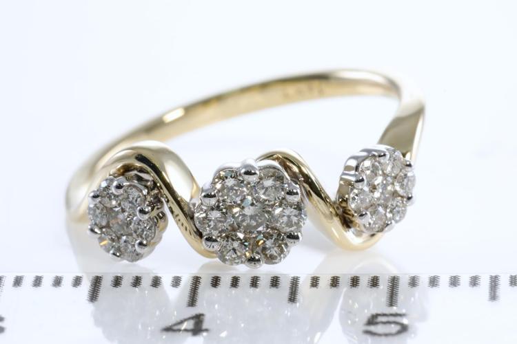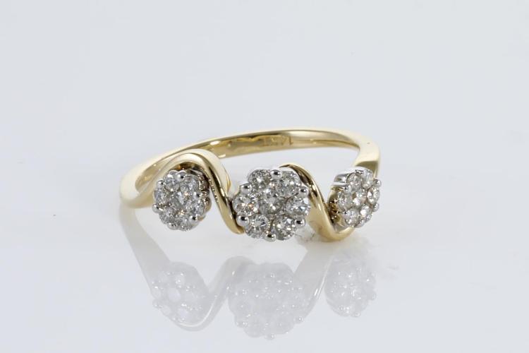 Diamond ring with round Natural Diamonds totalling 0.40cts (Estimated grading: H SI). 14ct yellow gold. Ring size: L - Note: resizing this ring is not recommended. Weight: 2.7g (New).