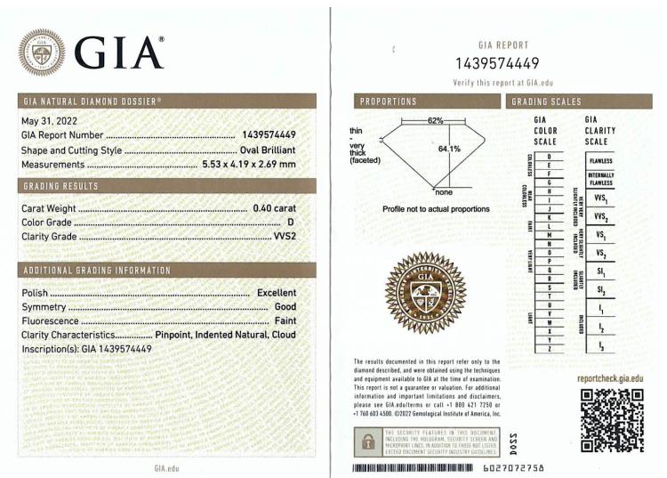 A loose oval shape Natural Diamond of 0.40ct (with GIA summary report graded as D VVS2# 1439574449