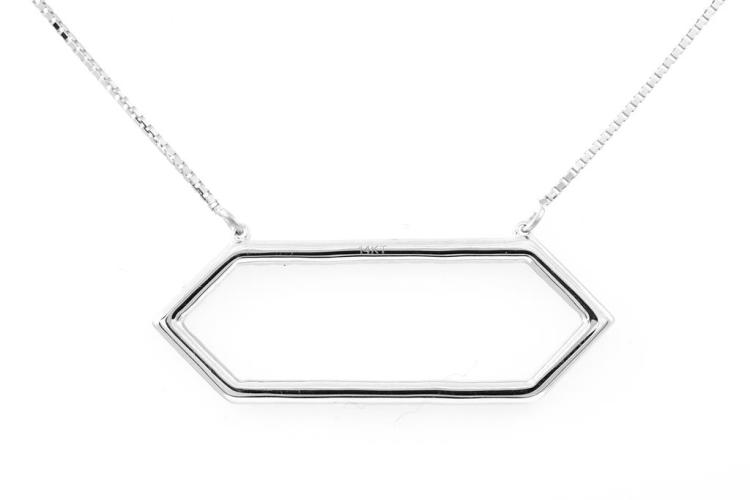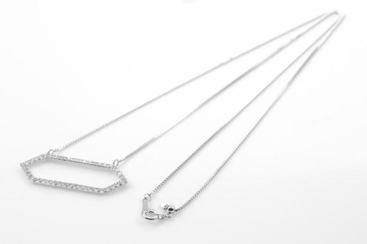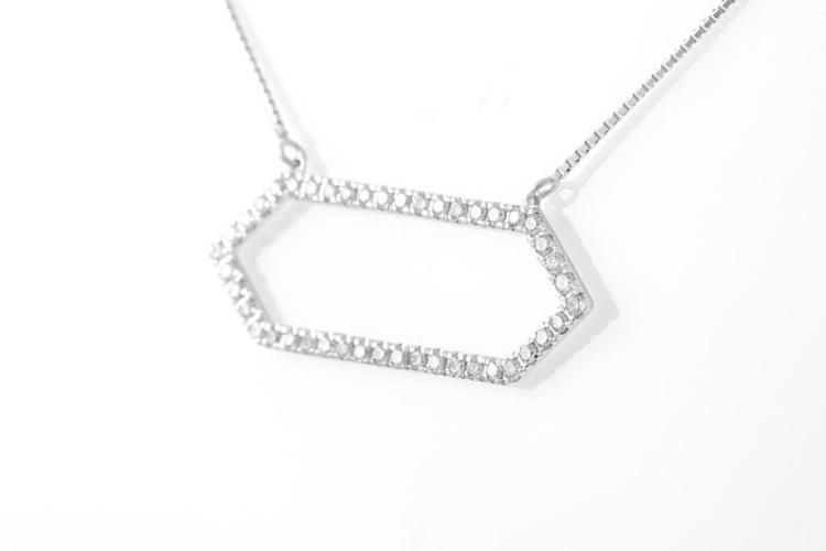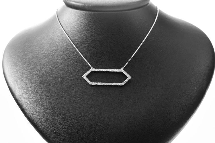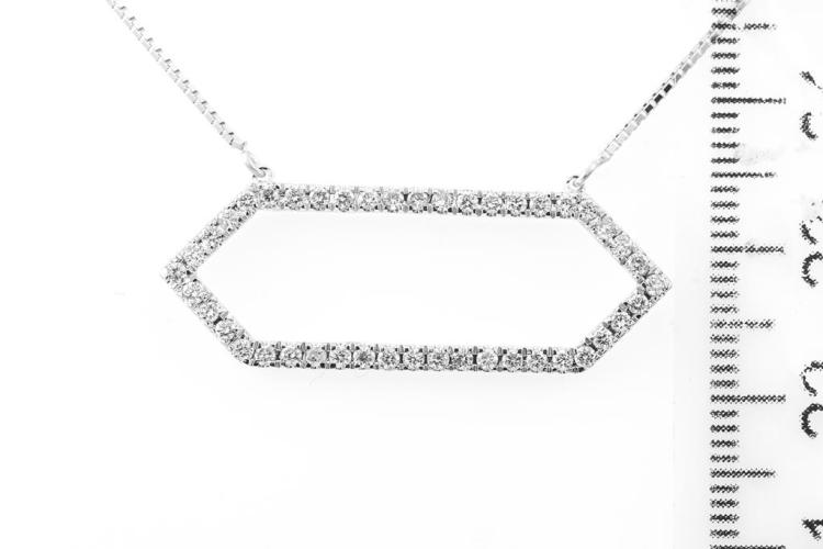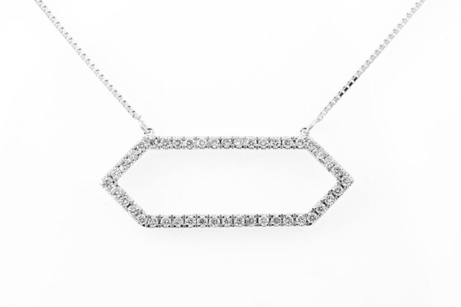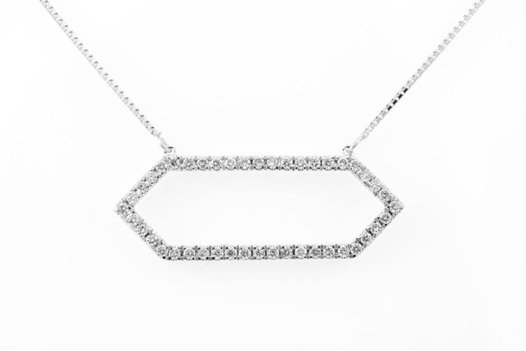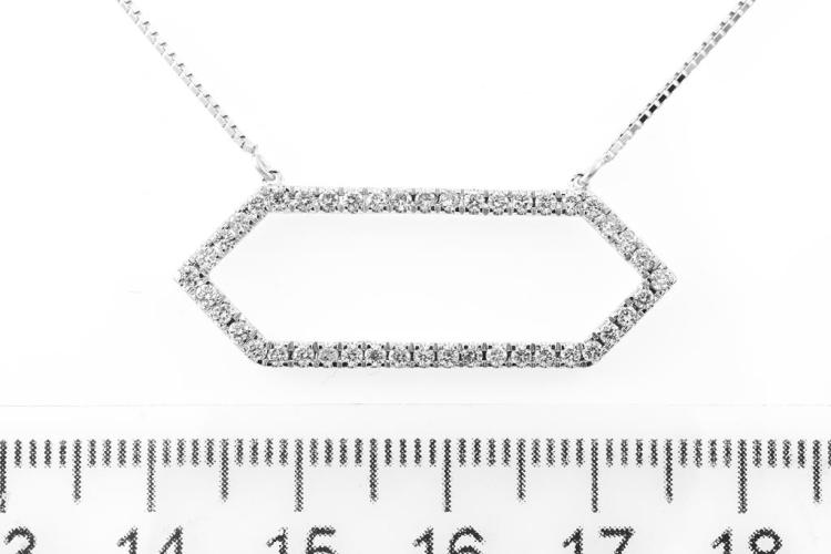 Diamond dress pendant with round Natural Diamonds totalling 0.50cts (Estimated grading: I-J SI). 14ct white gold with 18ct white gold adjustable chain attached. Length of chain 44cm. Weight: 3.7g. (New)^