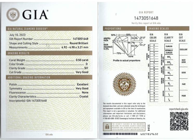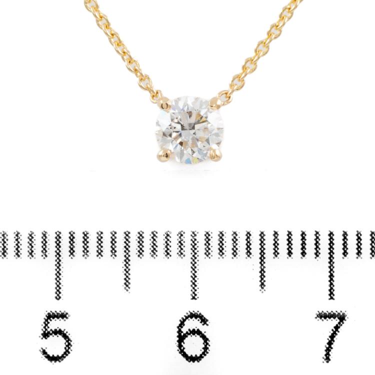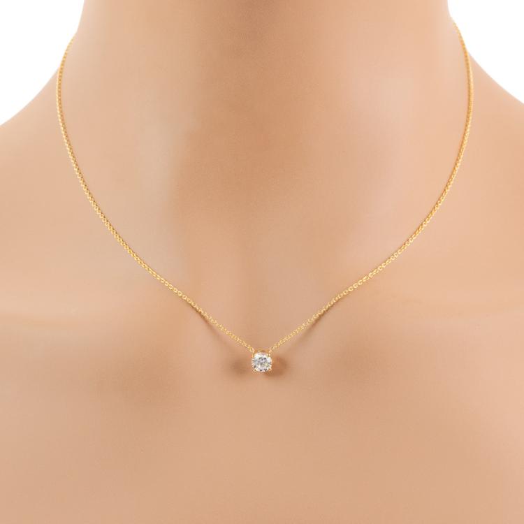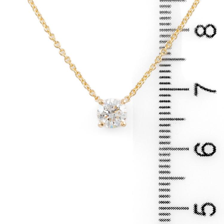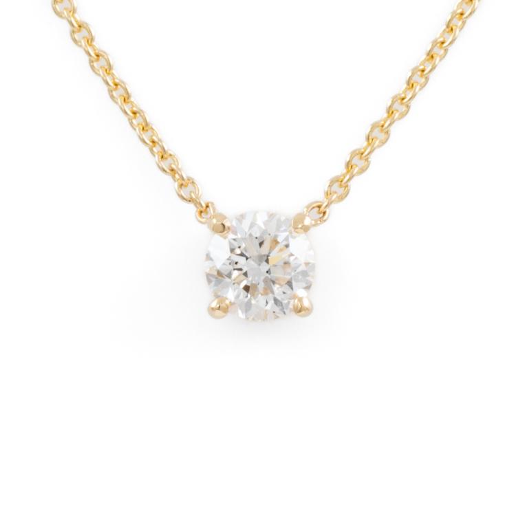 Diamond solitaire pendant with round brilliant cut natural Diamond of 0.50cts (with GIA Summary Report graded as D SI1 #1473051648). 18ct yellow gold attached with 18ct yellow gold chain. Length: 40.5cm. Weight: 2.3g. (New)