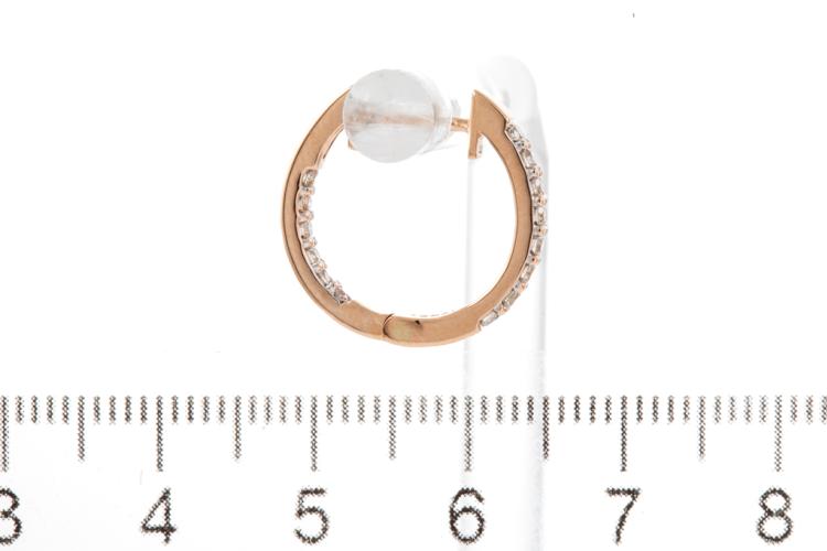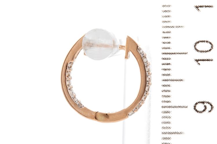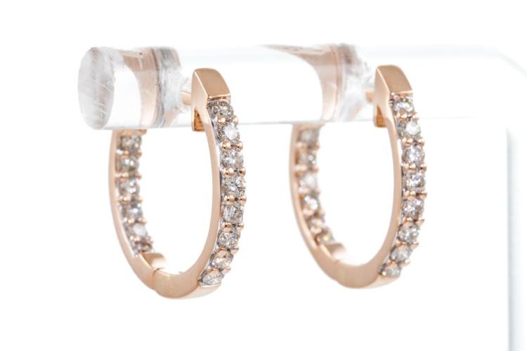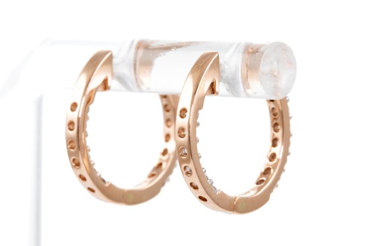 Diamond earrings with 28 round Diamonds totalling 0.51cts (Estimated grading: I SI). Back of the hoop has the Diamonds set inside the hoop. 14ct rose gold. Weight: 3.3g. (New)