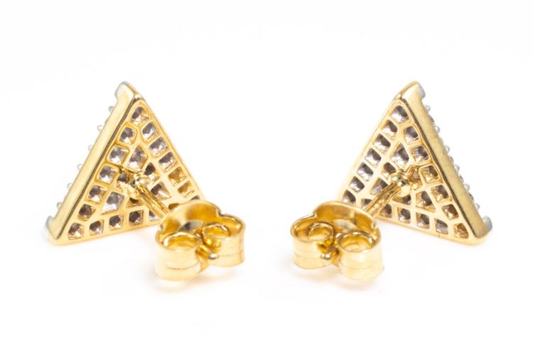 Diamond earrings with 48 round Diamonds totalling 0.53ct. (Estimated grading: H-I SI). 14ct yellow gold. Weight: 2.7g. (New)^
