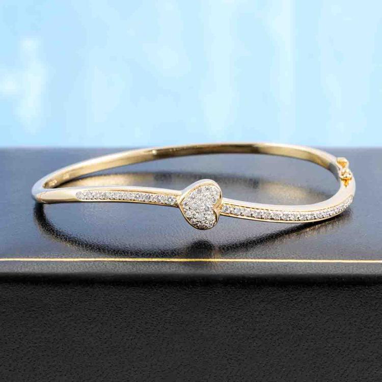 Diamond oval bangle with round Natural Diamonds totalling 0.54ct (Estimated grading: H-I SI). 18ct yellow gold. Circumference: 16.5cm. Width: 2.6mm. Weight: 13.9g. (Pre-owned)