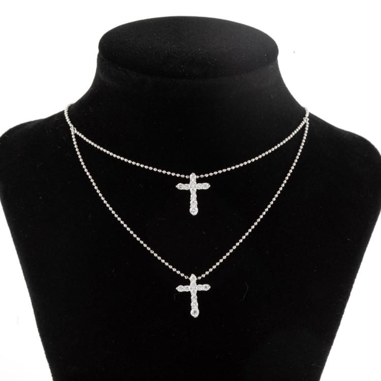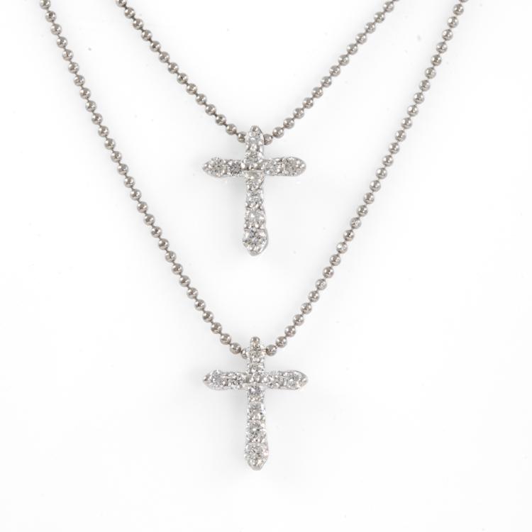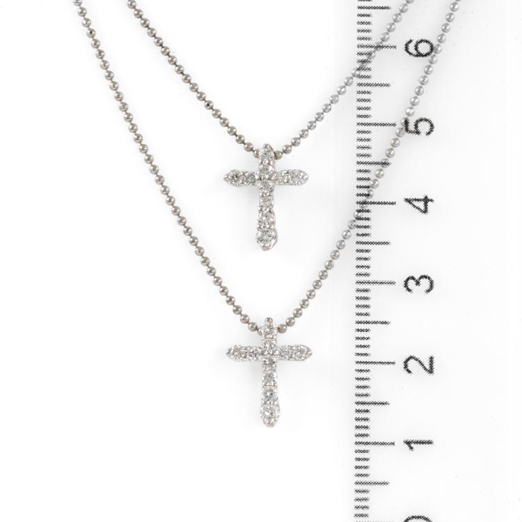 Diamond double cross pendant with round Natural Diamonds totalling 0.60cts (Estimated grading: H-I SI). Platinum 900 with platinum 850 chain. Length: 41cm. Weight: 6.4g. (Pre-owned)