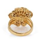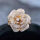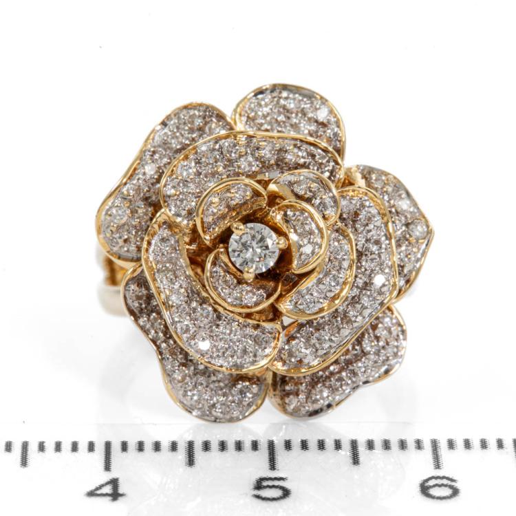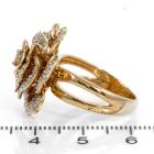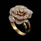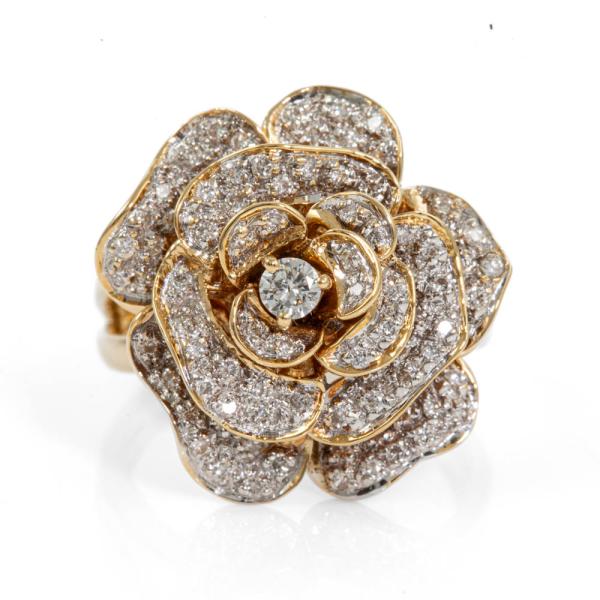 Diamond rose design ring with round Natural Diamonds totalling 0.64cts (Estimated grading: H-I SI). 18ct yellow gold. Ring size O½. Band width: 4.7mm - 3.2mm. Weight: 9.7g. (Pre-owned).