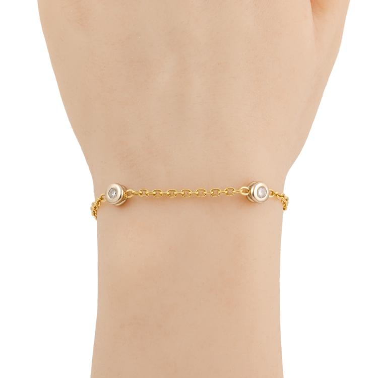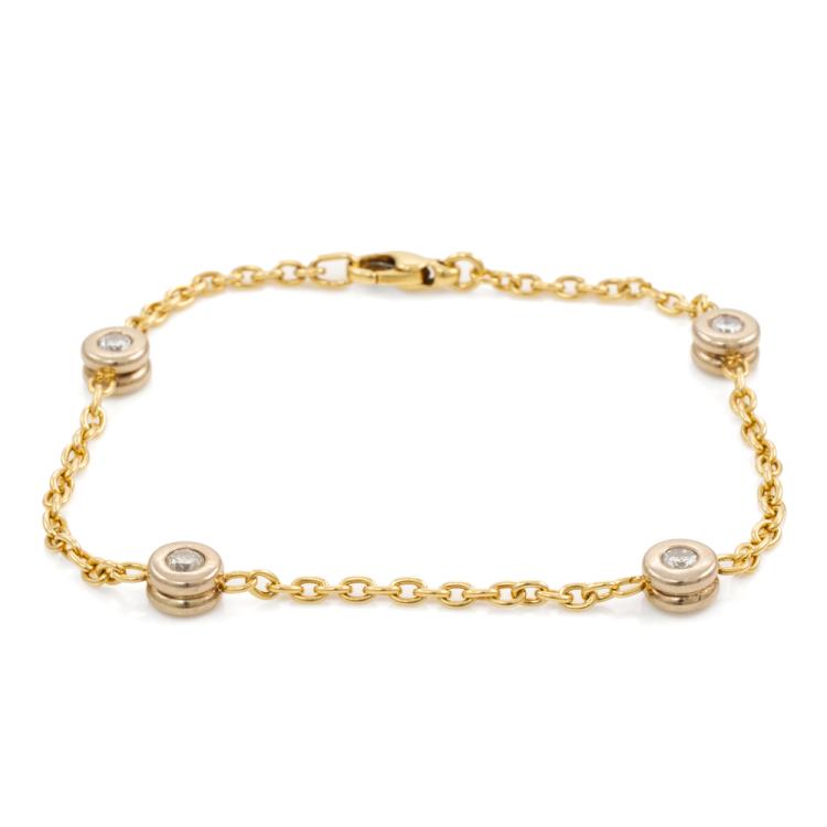 Diamond bracelet with 4 round Natural Diamonds totalling approximately 0.80cts (Estimated grading: H SI). 18ct yellow and white gold. Length: 19.5cm. Weight: 9.2g. (Pre-owned)