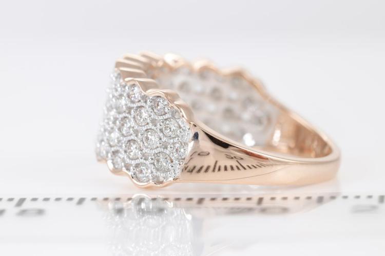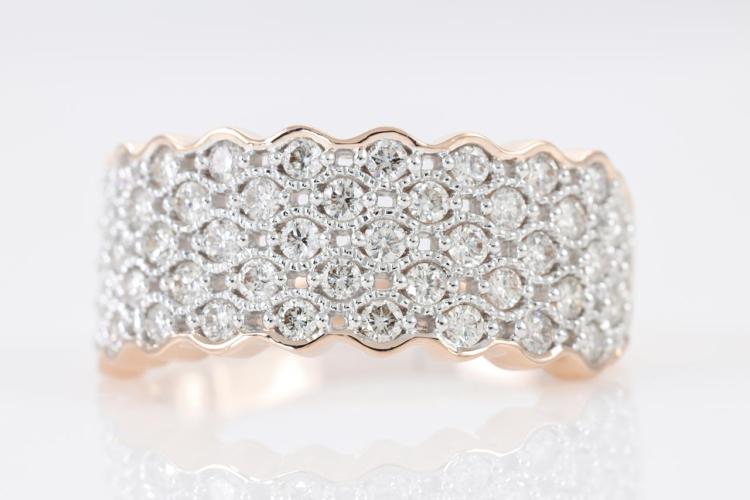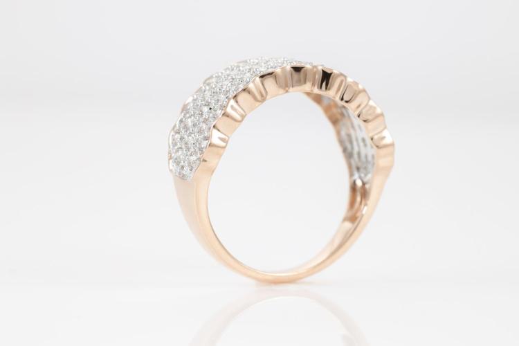 Diamond dress ring with round Natural Diamonds totalling 0.80cts (Estimated grading: H SI). 14ct rose and white gold. Size: M1/2. Weight: 4.1g. (New)