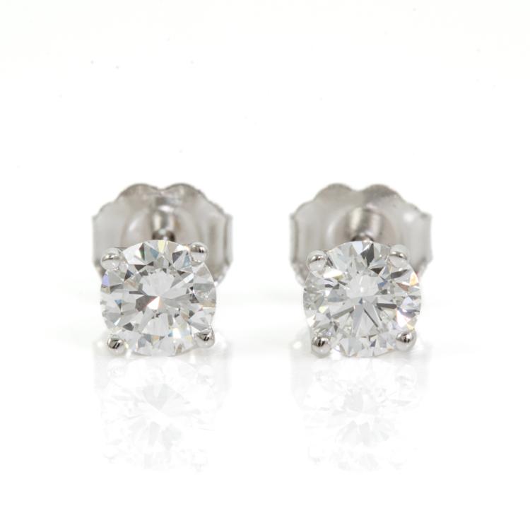 Diamond stud earrings with 2 round brilliant cut Natural Diamonds totalling 0.80cts (with GIA Summary Reports graded as D Internally Flawless #6465806878, 3475275271). 18ct white gold. Weight: 0.9g. (New)