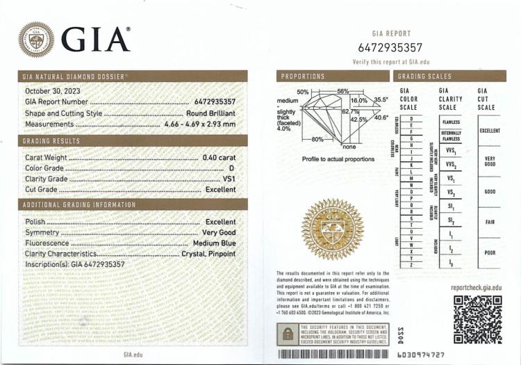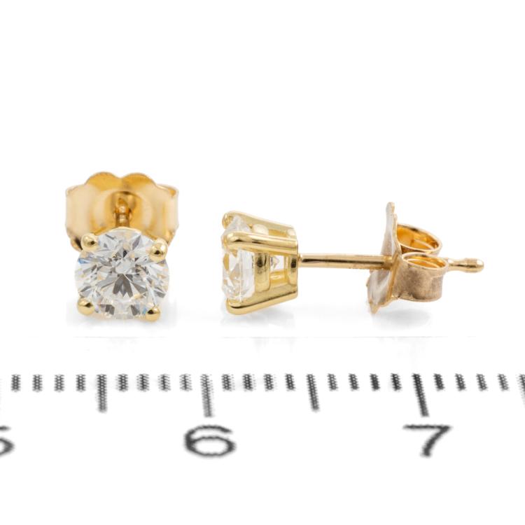 Diamond stud earrings with 2 round brilliant cut Natural Diamonds totalling 0.80cts (with GIA Summary Reports graded as D VS1 #2477171793, 6472935357). 18ct yellow gold. Weight: 0.9g. (New)