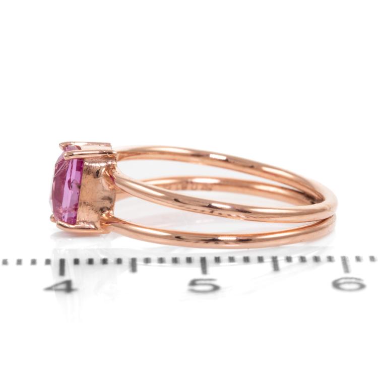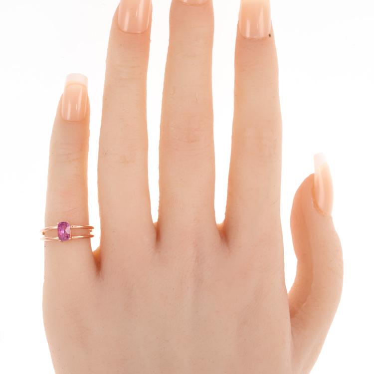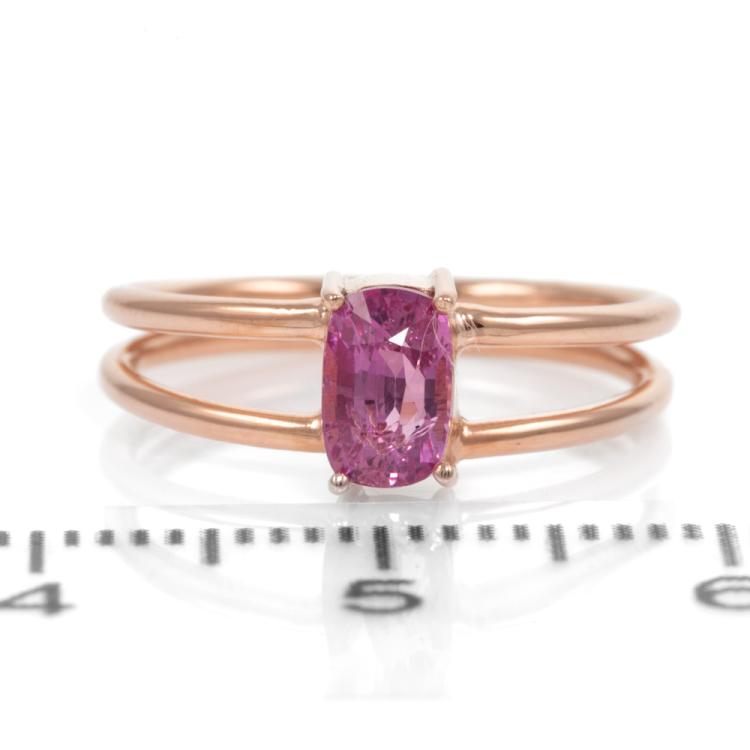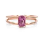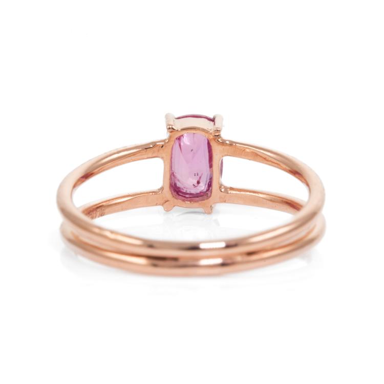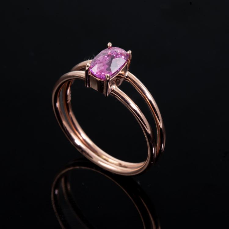 Sapphire ring with an oval shape unheated Ceylon pink Natural Sapphire of 0.81ct. 14ct rose gold. Weight: 1.8g. Band width: 2.3mm-4.4mm. Ring size I. With GGTL report #201006. (As new)
