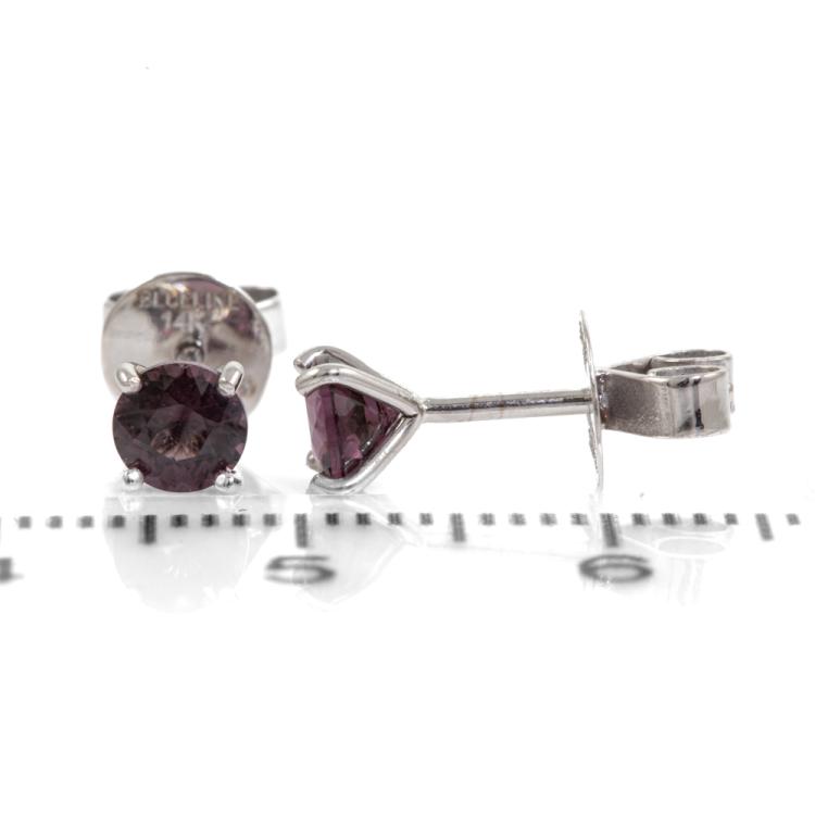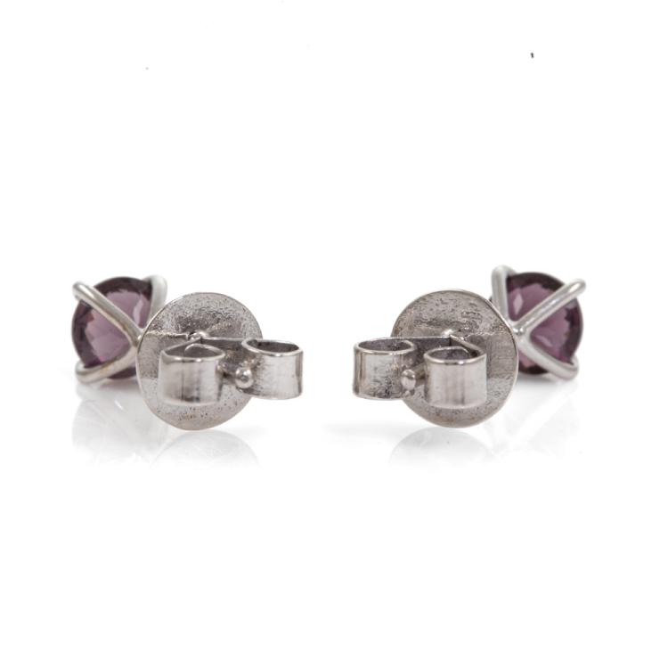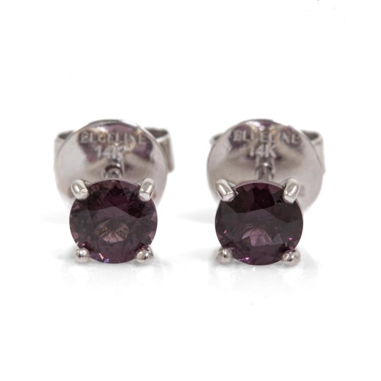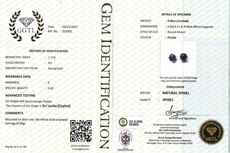 Spinel stud earrings with round pinkish purple Ceylon Natural Spinel totalling 0.85cts. 14ct white gold. Weight: 0.9g. With GGTL report #201003. (As new)