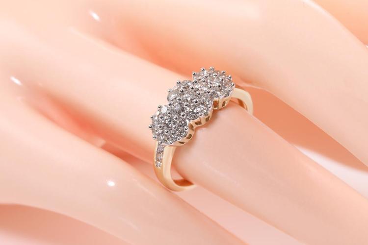 Diamond dress ring with 35 round Natural Diamonds totalling 0.90cts (Estimated grading: H SI). 14ct yellow and white gold. Size: M1/2. Weight: 4.0g. (New)