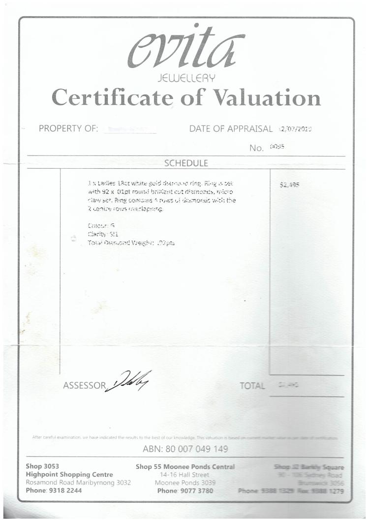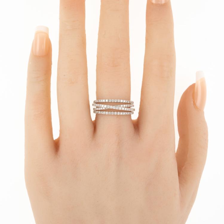 Diamond dress ring with round natural Diamonds totalling 0.92cts (Estimated grading: G SI1). 18ct white gold. Ring size M - ring resize is not recommended. Band width: 4.1mm. Weight: 4.7g. With Valuation dated 12/07/19. (Pre-owned)