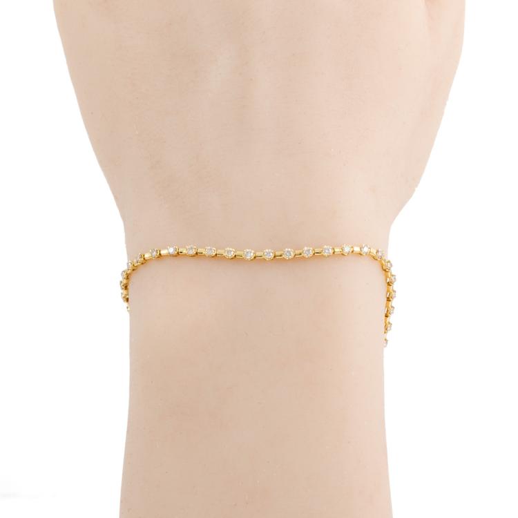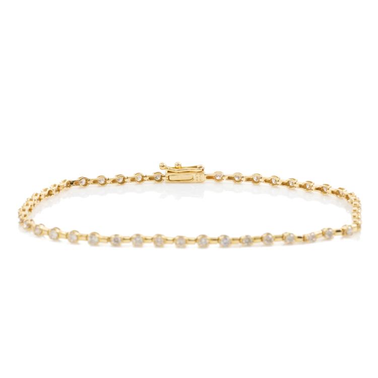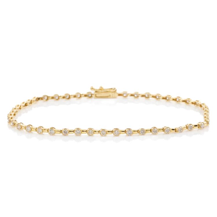 Diamond bracelet with round natural Diamonds totalling 1.00cts (Estimated grading: I-J SI-P1). 18ct yellow gold. Length: 18cm. Weight: 3.4g. (Pre-owned)