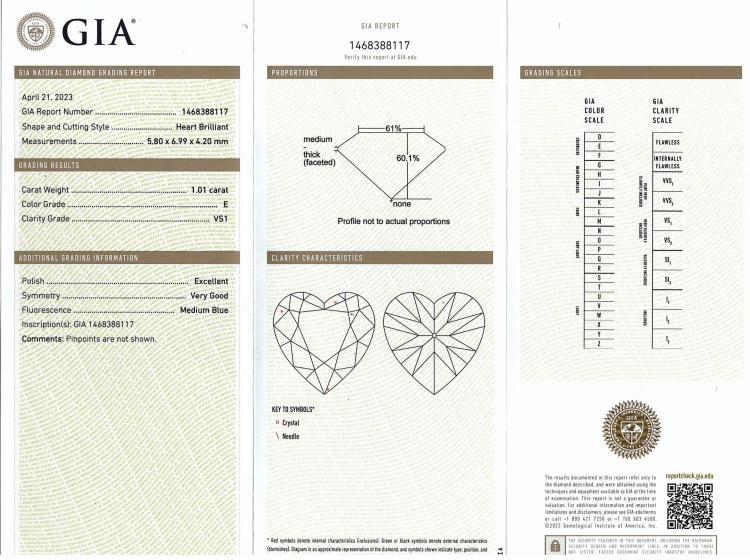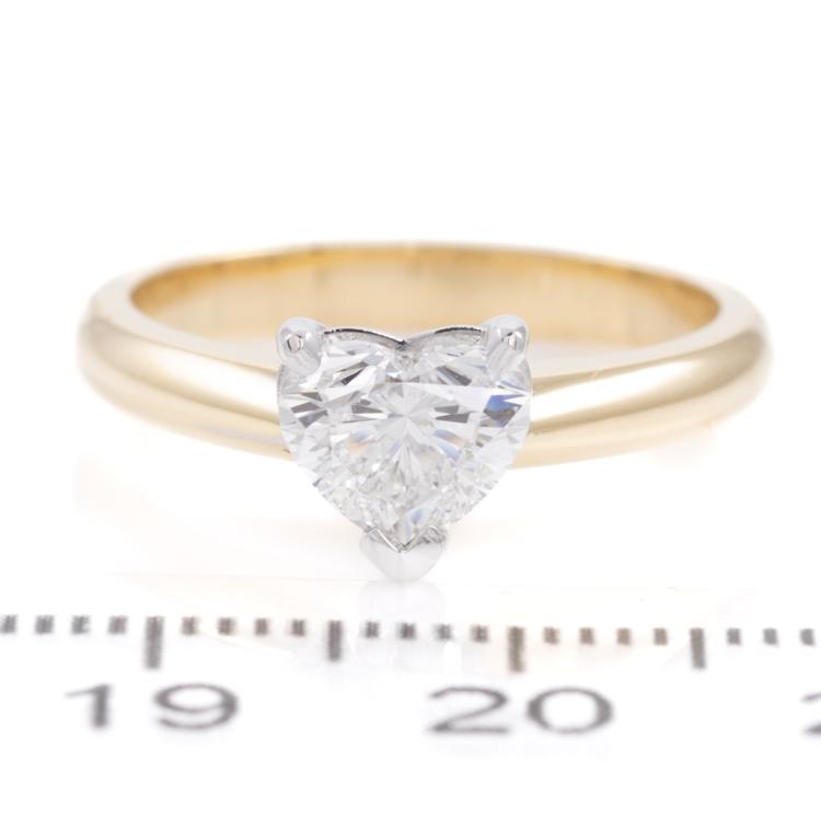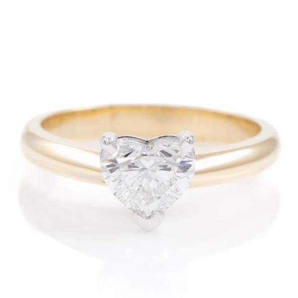 Diamond solitaire ring with a heart shape Natural Diamond of 1.01ct (With GIA report graded as E VS2 #1468388117). 18ct yellow & white gold. Ring size L1/2. Band width: 2.6mm. Weight: 5.2g. (New)