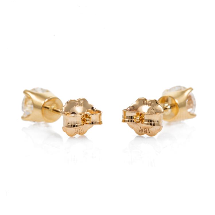 Diamond stud earrings with 2 round brilliant cut Natural Diamonds totalling 1.01cts (both with GIA Summary Reports graded as D VS1 & E VS1 #6471542654, 7471892365). 18ct yellow gold. Weight: 1.3g (New)
