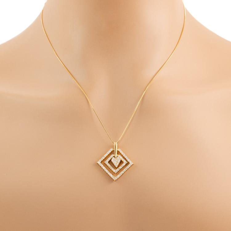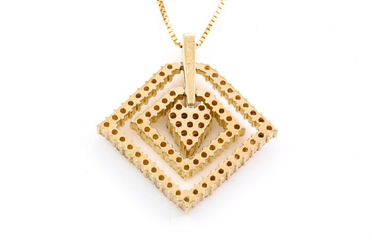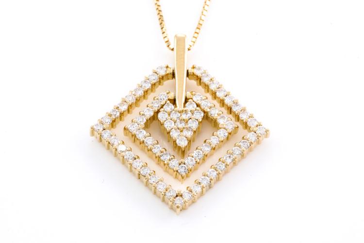 Diamond dress pendant with round Natural Diamonds totalling 1.02cts (Estimated grading: H-I SI). 18ct yellow gold with 44cm 18ct yellow gold adjustable chain. Weight: 7.8g. (Pre-owned)