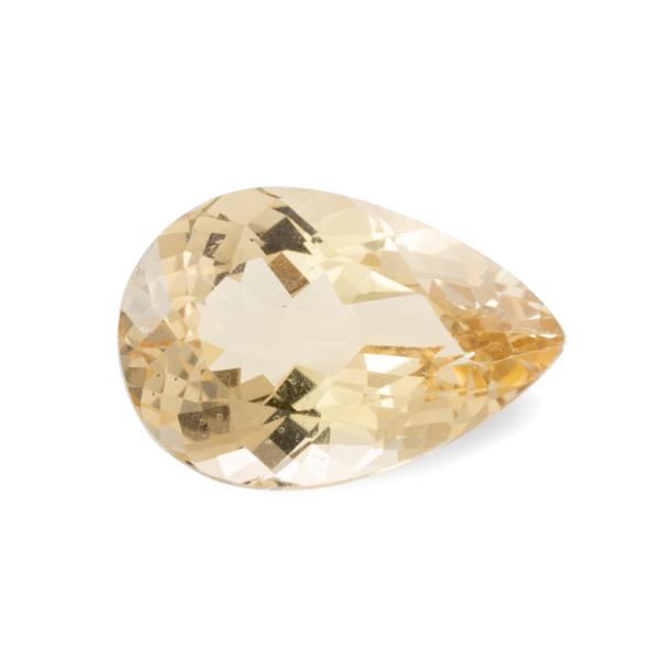 A loose pear shape Madagascar Natural Heliodor (Yellow Beryl) of 10.48ct. With AIG Report #GEM20240126107802 stating origin: Madagascar. (As new)