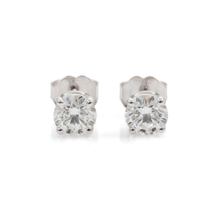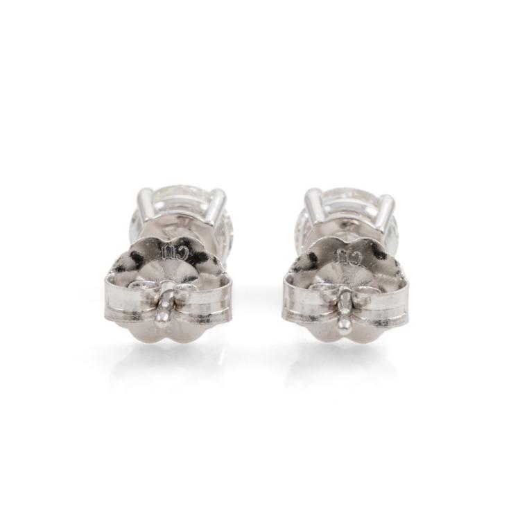 Diamond stud earrings with 2 round brilliant cut Natural Diamonds totalling 1.04cts (both with GIA summary reports graded as D Internally Flawless #2464365891, 6461949250). 18ct white gold. Weight: 1.1g (New)