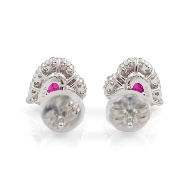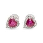 Ruby and Diamond earrings with heart shape Natural Rubies totalling 1.16cts and round Natural Diamonds totalling 0.20cts. Platinum 900 with silicon backs. Weight: 2.0g. (Pre-owned)