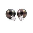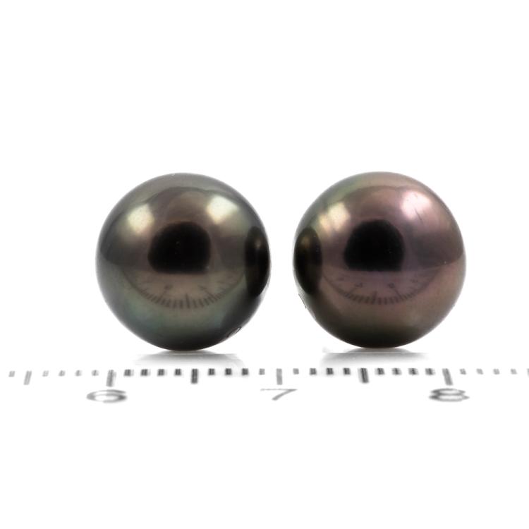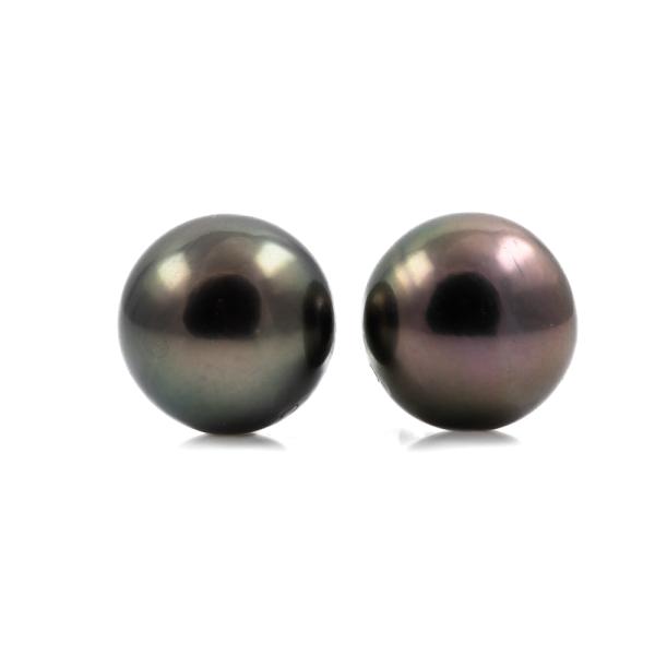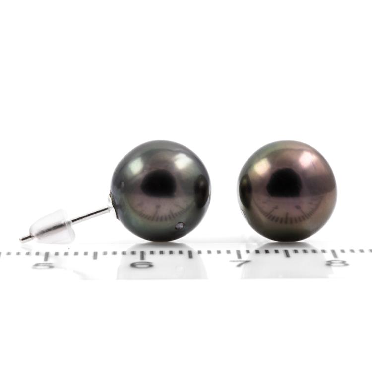 Pearl stud earrings with Tahitian pearls of 11mm. 14ct white gold with silicon backs. Weight: 3.9g. (Pre-owned)^