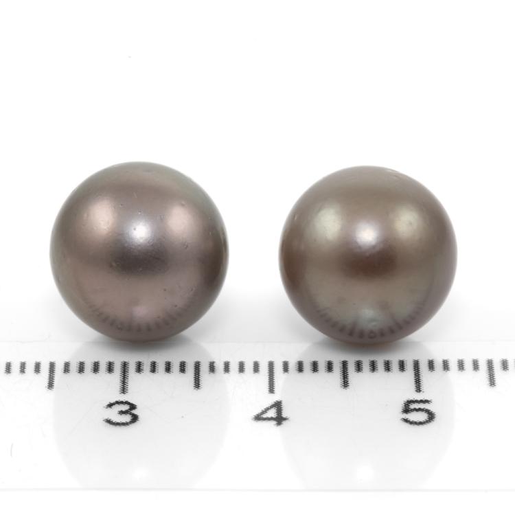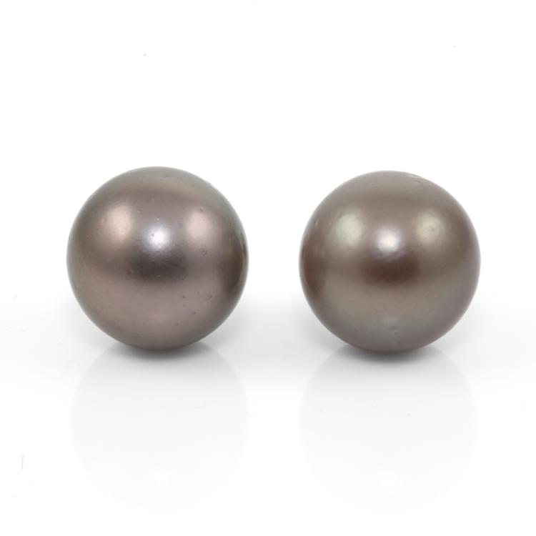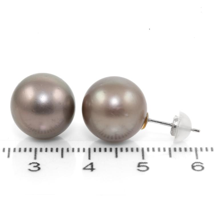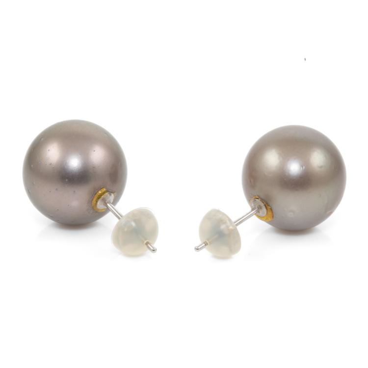 Pearl stud earrings with Tahitian Pearls of 12.4mm & 12.5mm. Platinum 900 with silicon backs. Weight: 6.0g. (Pre-owned)