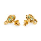 Emerald and Diamond earrings with 2 oval shape natural Emeralds totalling approximately 1.30cts and round natural Diamonds totalling 0.06cts. 18ct yellow gold. Weight: 4.7g (Pre-owned)
