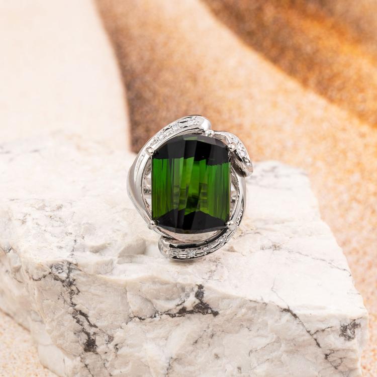15.77ct Green Tourmaline & Diamond Ring