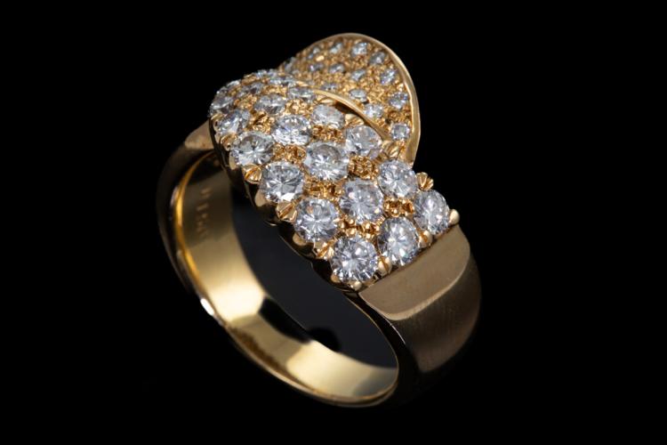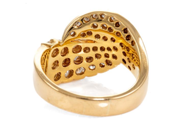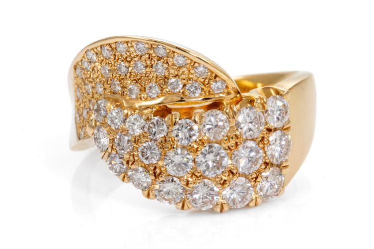 Diamond dress ring with round Natural Diamonds totalling 1.58cts (Estimated grading: G-H SI). 18ct yellow gold. Ring size O1/2. Weight: 11.7g. (Pre-owned)