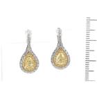 Yellow and White fancy colour Diamond clip-on earrings (for pierced ears) with 2 pear shape Fancy Yellow natural Diamonds totalling 1.03cts (Estimated grading: Fancy Light Yellow SI) and remaining round natural Diamonds totalling 0.64cts (Estimated grading: Fancy Light Yellow & G-H SI). 18ct yellow and white gold. Weight: 5.3g. With certificate #417189. (As new)