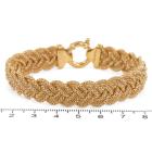 Gold Bracelet with a twisted wire braided design with a spring ring clasp. 18ct yellow gold. Length: 19.5cm. Width: 12.2mm.Weight: 26.5g. (Pre-owned)