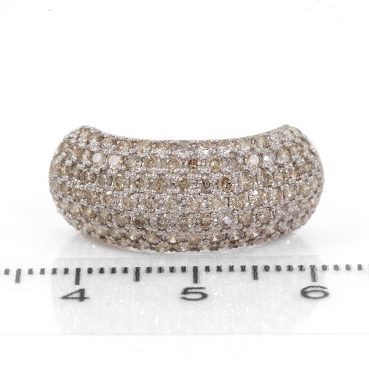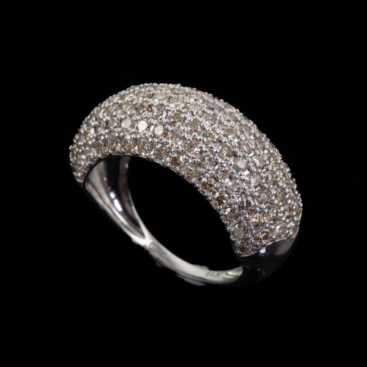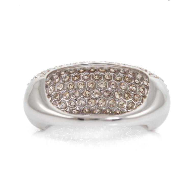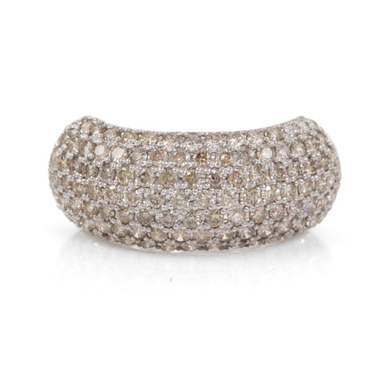 Diamond Dress ring with round natural Diamonds totalling 2.00cts (Estimated grading: Light Champagne SI-P1). 18ct white gold. Ring size L 1/2. Band width:1.8mm - 7.2mm. Weight: 4.2g. (Pre-owned)