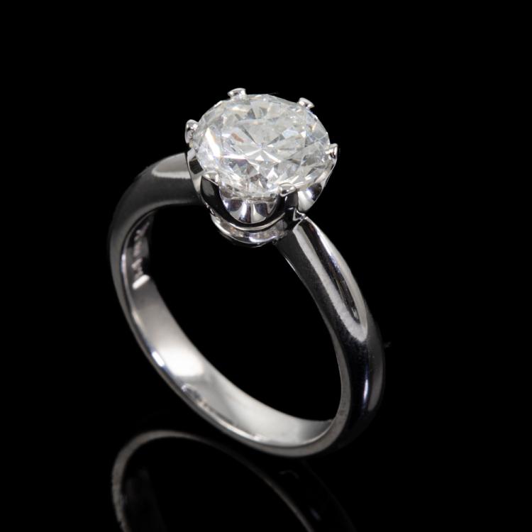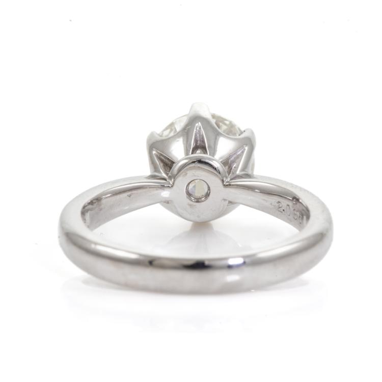 Diamond Solitaire ring with round brilliant cut Natural Diamond of 2.03cts (GSL Report graded as H P2 #AA68683/1). Platinum 900. Ring size K1/2. Band width: 2.9mm - 2mm. Weight: 7.5g. (Pre-owned).