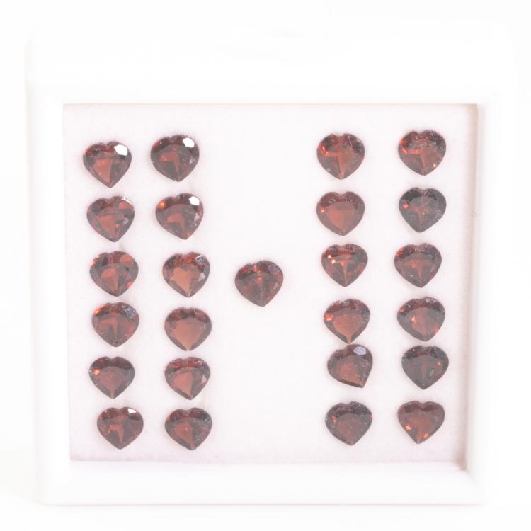 A loose parcel of 25 heart shape Garnets totalling 21.72cts. Measuring approximately 6.0 x 6.0mm. (As new)
